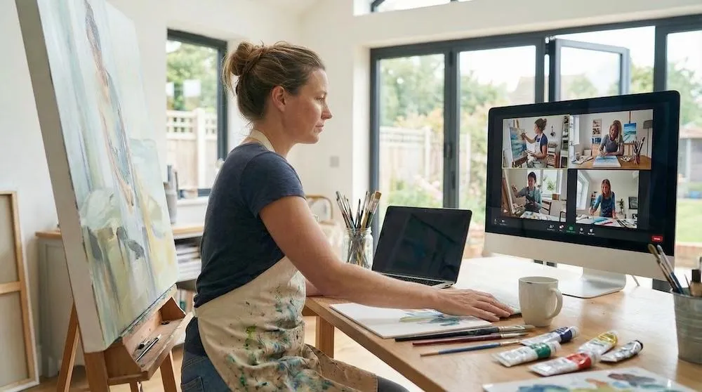 During a session you will see real painting decisions unfold inside the studio and explore how the ideas apply to your own work.