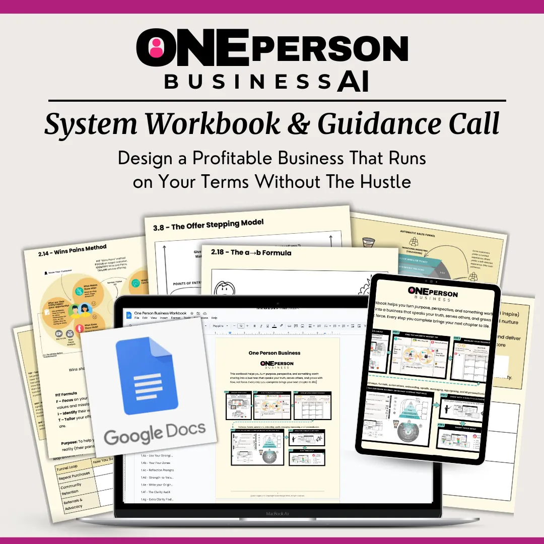 The One Person Business AI System Workbook Plus a Personalized Support Call along with text support